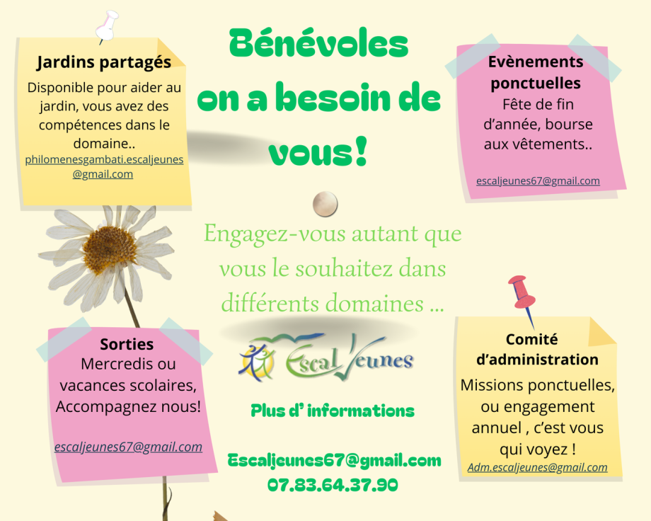 L'Escal’Jeunes est une association familiale qui a pour premier objectif de s’occuper des enfants scolarisés dans la commune. Ainsi, plus de 130 enfants fréquentent la structure en semaine, soit pour le repas de midi, soit pour les mercredis / vacances scolaires ou encore le soir après l’école (maternelle ou primaire).