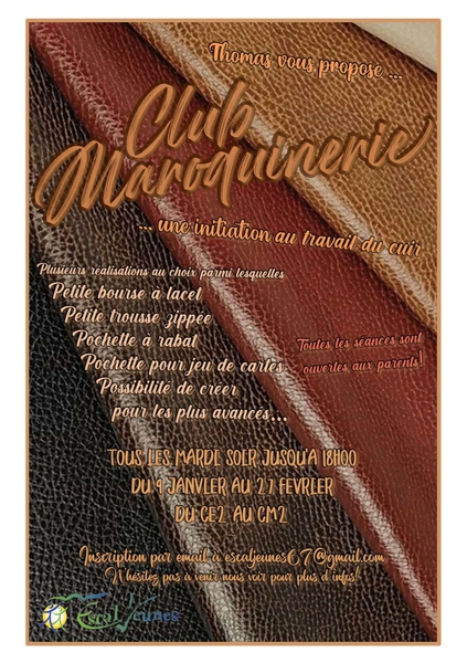 Sur chaque affiche, vous trouverez les jours des séances, le niveau scolaire requis pour l'inscription, ainsi qu'une présentation brève du déroulement des différentes séances, accompagnés de l'animateur / trice proposant le club.