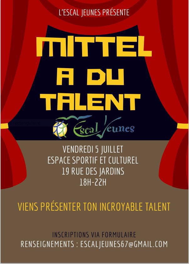 Dans le cadre de cette fête, un concours de talent est organisé, intitulé "Mittel' a du talent". Le but de cet événement est de vous permettre ainsi qu'a tous les membres des